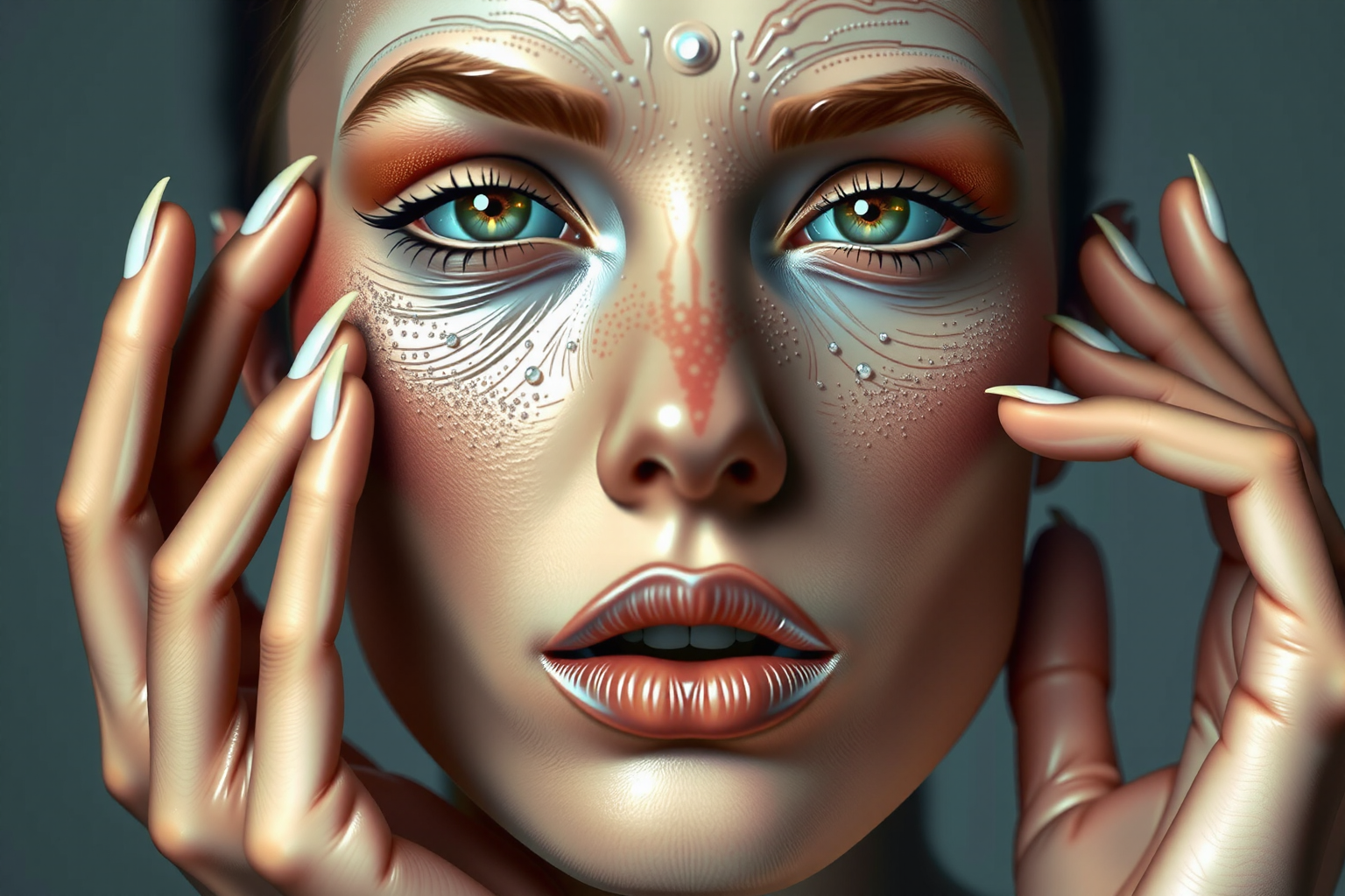 Una vez que tengas los productos adecuados, querrás marcar las zonas de tu rostro donde aplicarás el contorno, el iluminador y el colorete. Para el contorneado, concéntrate en el perímetro exterior de la cara, la línea del cabello, debajo de los pómulos y a lo largo del contorno de la mandíbula. Para resaltar, fíjate en dónde incide la luz de forma natural en la cara: el centro de la frente, bajo los ojos, a lo largo del puente de la nariz y en el mentón. Para el rubor, céntrate en las manzanas de las mejillas.